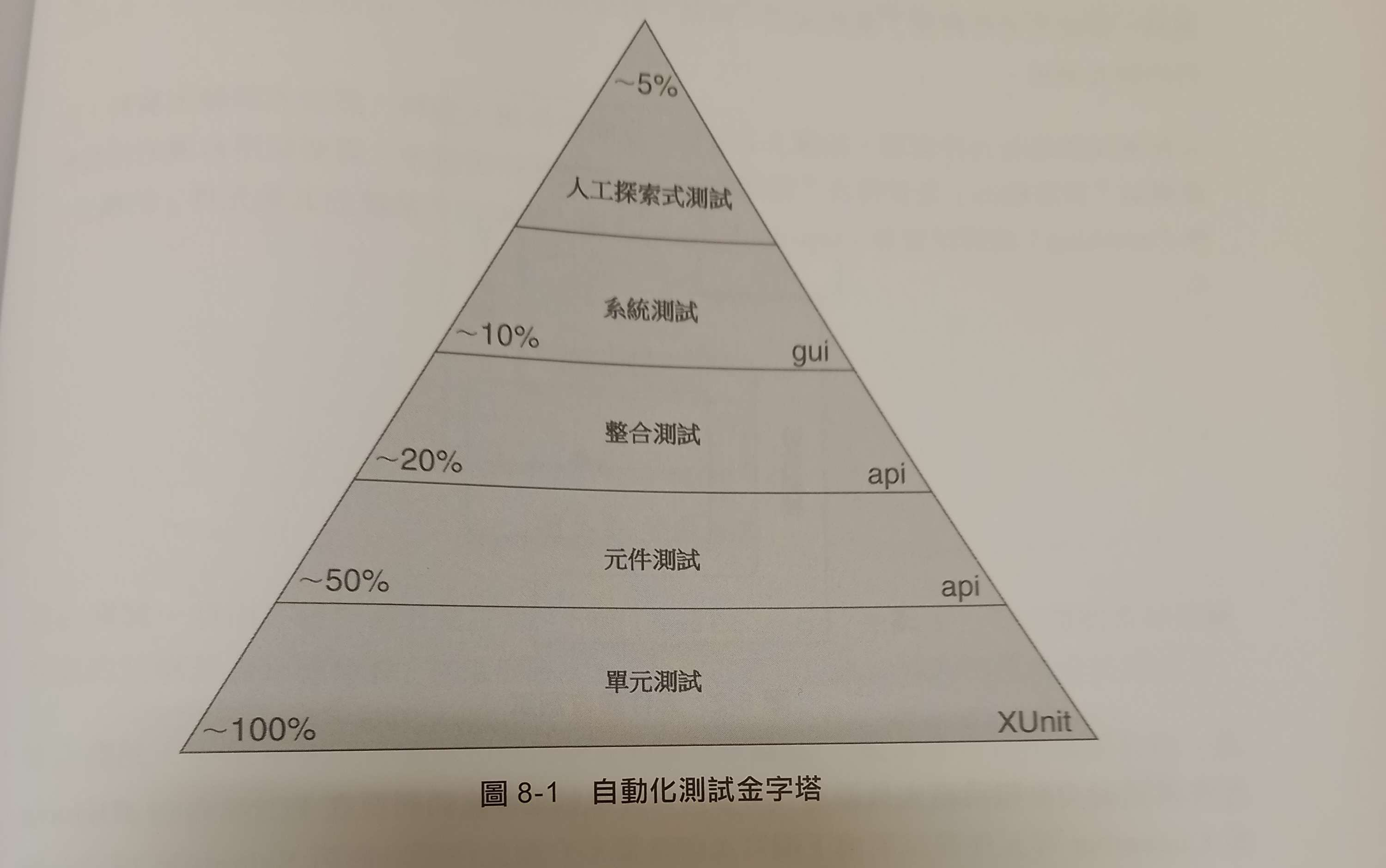這張圖說明了自動化測試的幾個階段,從下到上分別是: